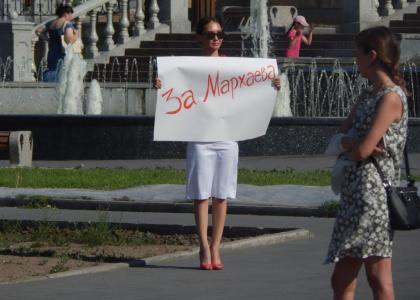 Акция проходит в ответ на развернувшуюся в СМИ кампанию по очернению Вячеслава Мархаева - одного из наиболее вероятных победителей предстоящих выборов главы региона.