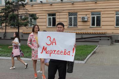 В столице Бурятии городе Улан-Удэ сторонники Вячеслава Мархаева провели пикетирование здания Народного Хурала перед очередной сессией депутатов.
