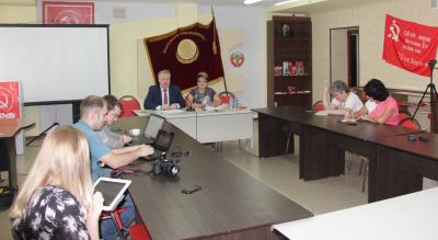 30 июня в Саратовском обкоме КПРФ прошла пресс-конференция Обухова Сергея Павловича, члена Президиума, секретаря ЦК КПРФ, заместителя директора Центра исследований политической культуры России и Алимовой Ольги Николаевны, первого секретаря регионального обкома КПРФ.