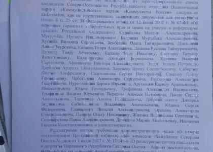 Ставропольский краевой суд принял решение об удовлетворении иска Северо-Осетинского регионального отделения КПРФ о снятии списка "Коммунистов России" с выборов в Парламент Северной Осетии.