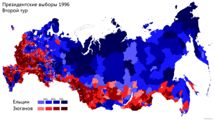 Именно тогда, накануне президентских, прошли выборы в Госдуму, на которых первое место заняла КПРФ, набрав 22% голосов (ЛДПР получила 12%, а пропрезидентское движение "Наш дом - Россия" - 10%). Положение коммунистов было устойчивым, особенно на фоне политики, проводимой командой Ельцина. Достаточно упомянуть провальные экономические реформы, поражение в Чеченской кампании и коррупционные скандалы в окружении первого президента, избранного в 1991 году.