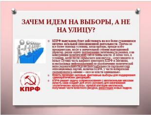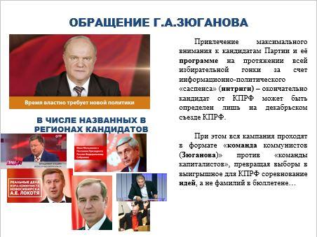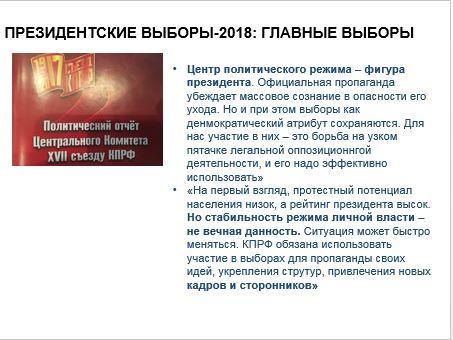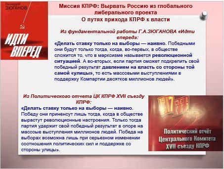 Исходя из этого отметил особенности как выборного процесса, так и цель и смысл участия КПРФ в выборных процедурах в условиях авторитарного режима.