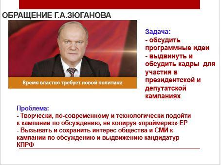 Секретарь ЦК КПРФ подробно остановился на обобщении опыта и результатов участия КПРФ в выборных кампаниях, особенностях выборного процесса.