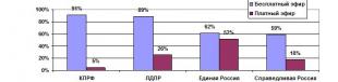 время на ТВ и радио, чем другие партии. «Единая Россия», ЛДПР и «СР» обладали