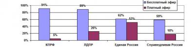 время на ТВ и радио, чем другие партии. «Единая Россия», ЛДПР и «СР» обладали