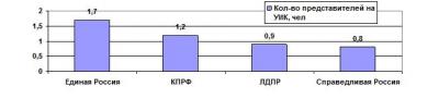 представителей «Единой России», 0,9 представителей ЛДПР и 0,8 представителей