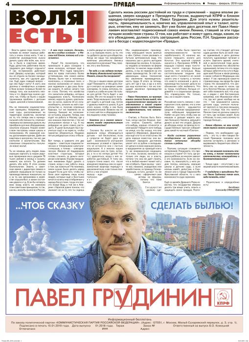 Вышел в свет информационный бюллетень «Правда» за январь – февраль 2018 года.