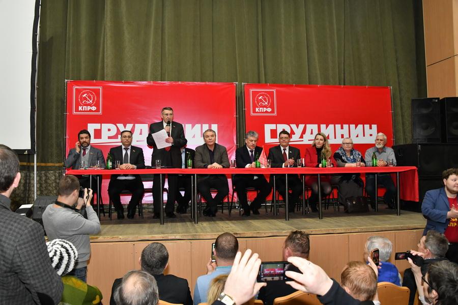 Открыл встречу Л.И. Калашников. Представив собравшимся П.Н. Грудинина, он рассказал о том, что выдвижение директора совхоза имени Ленина кандидатом в президенты стало итогом широкой дискуссии и было поддержано мощным блоком коммунистов и народно-патриотических сил.