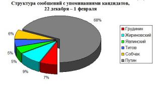 Таким образом, 31 января в сравнении с 30 января упали доли В. Жириновского (с 57 до 38%), Г. Явлинского (с 18 до 15%) и Б. Титова (с 20 до3%).