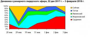 Динамика суммарного лидерского эфира, 22 дек 2017 г. – 3 февраля 2018 г.