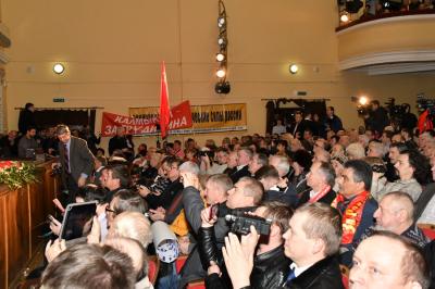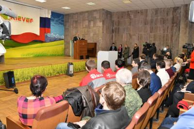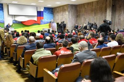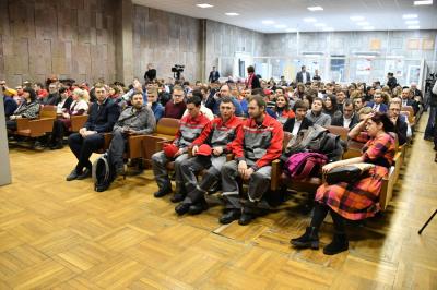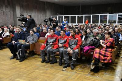 предприятия собрались в большом актовом зале. Кандидат в президенты от КПРФ и