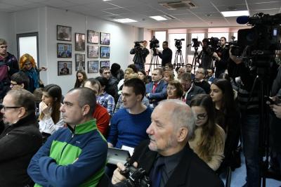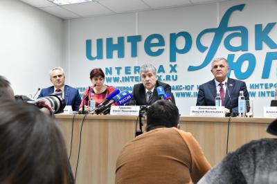 пресс-конференции также приняли участие Н.В. Коломейцев, Е.И. Бессонов, руководитель пресс-службы нашего кандидата, депутат Госдумы А.А. Ющенко и