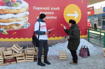 В Челябинске каждый день можно увидеть одиночные пикеты, на котором добровольцы П.Н. Грудинина распространяют агитационные материалы.