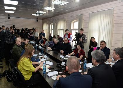 Грудинин провел пресс-конференцию в помещении Новосибирского областного