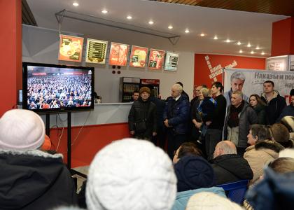 концу фильма зал разразился аплодисментами и под крики «На победу!», «Наш