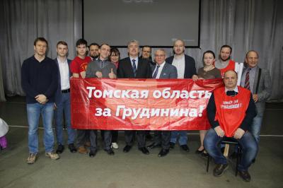 Томская делегация развернула в зале плакаты со словами поддержки народного кандидата в Президенты РФ: «Томская область за Грудинина!», «Сделаем Томскую область территорией социального оптимизма», «Умный город Томск выбирает Павла Грудинина!» и другими.