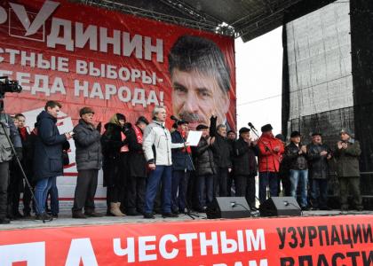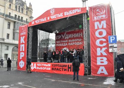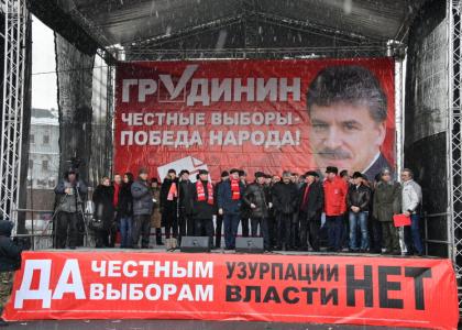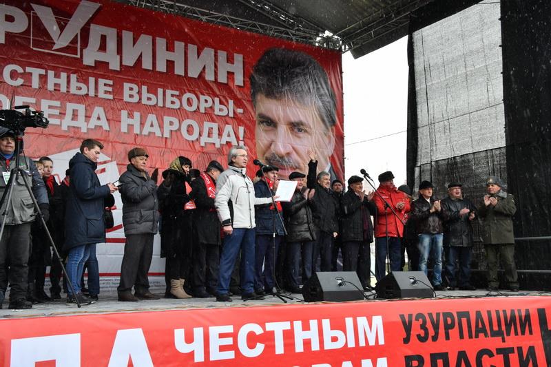 сценой были следующие лозунги: «Да честным выборам! Узурпации власти нет!», «Грудинин!