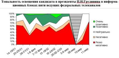 В целом же доля негативной агитации против кандидата от КПРФ оставила 77,7% от всех сюжетов с упоминанием кандидата Грудинина.