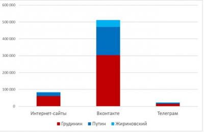 Рисунок 1. Доля голосов за кандидатов по различным ресурсам