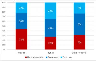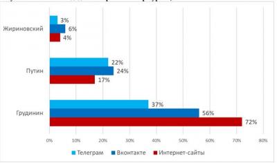 Рисунок 3. Рейтинг кандидатов по различным ресурсам, %