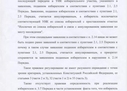 3. Особо следует выделить вопиющие и повсеместно наблюдавшиеся случаи, когда на тех или иных УИКах избиратели, подавшие заявления о голосовании по месту фактического нахождения, имели возможность проголосовать неоднократно: и по месту поданной заявки, и по месту регистрации (Приморский район УИКи 1817 и 1818, Красногвардейский район УИК 955, Фрунзенский район УИК 2124, Невский район УИК 1444 и др.). Указывая на это, считаем такую практику противозаконной и совершенно недопустимой. Должностные лица избирательных комиссий, которые применяли её, должны быть привлечены к ответственности по действующему законодательству.