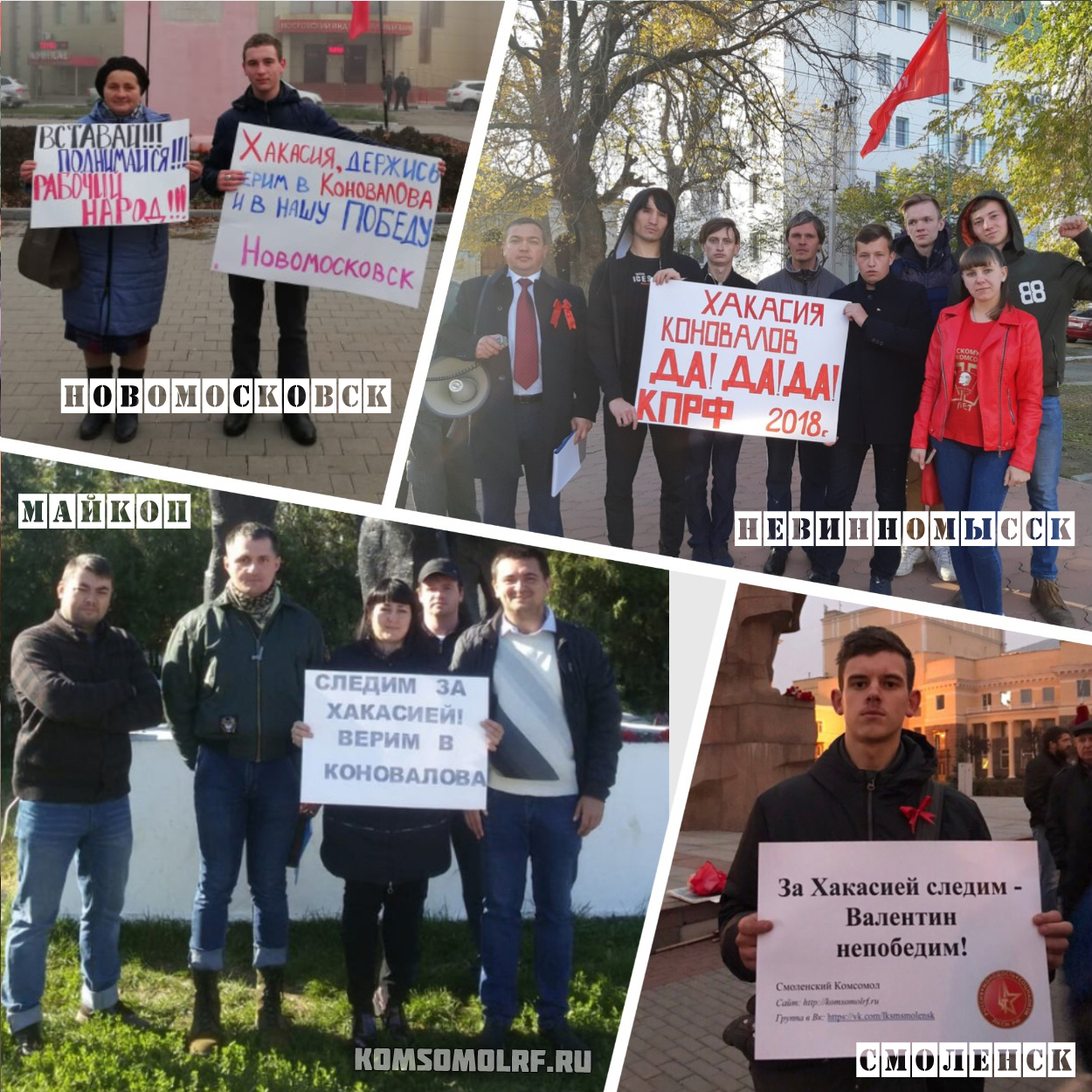 Молодые коммунисты и комсомольцы со всей страны следят за развитием событий в Республике Хакасия. Поджог дома депутата, украденные и испорченные баннеры, заклеенные провокационными листовками двери рескома КПРФ – такими крупными и мелкими подлостями вредят оппоненты кандидату на пост главы Республики Хакасия от КПРФ Валентину Коновалову.