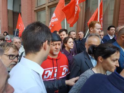 После встречи у Центральной избирательной комиссии депутаты Госдумы от КПРФ Валерий Рашкин и Денис Парфёнов вместе с кандидатами направились в МГИК и передали туда заявление.