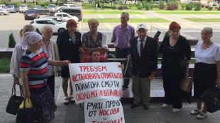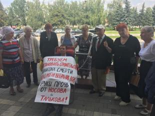 с плакатами, выступающие в защиту кандидатов от КПРФ.
