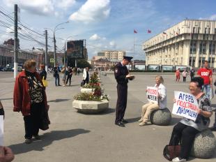 А рядом, на площади Ленина в это время прошёл пикет в поддержку КПРФ.