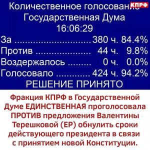 Секретарь ЦК КПРФ Сергей Обухов заявил "НГ", что «с принятием мер по предотвращению эпидемии власть катастрофически запаздывает: то, что голосование надо отменять, – это однозначно». По его словам, политически нецелесообразно проводить сейчас этот псевдореферендум, в котором нет и никакой законной необходимости. Обухов не сомневается, что в итоге власти отменят или перенесут голосование. Вместе с тем он предположил, что, конечно, голосование может быть переведено в интернет. Коммунист хотя и назвал позицию либералов логичной, но отметил, что для выигрыша в информационном поле нужно иметь широкие информационные возможности, а «информационные пушки» сегодня есть только у власти.