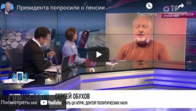 Выступая в Программа "Отражение" в эфире канала ОТР, член Президиума, секретарь ЦК КПРФ Сергей Обухов отметил, что на сегодняшний день одной из основных проблем является запрещенная партией «ЕР» индексация пенсий работающим пенсионерам, а также, в целом, позорно малый размер пенсий в нашей стране.