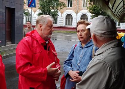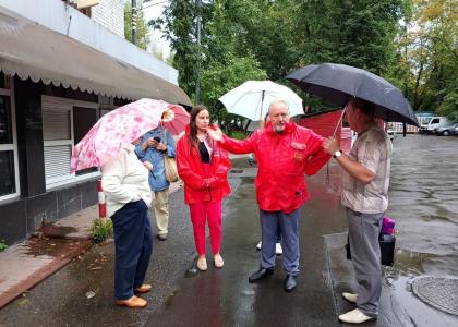 Несмотря на непогоду, Сергей Обухов, активисты «Народной приемной» вместе с депутатом МГД от КПРФ Еленой Янчук провели встречу с жителями во дворе дома 26 по 3-й Парковой, в Измайлове.