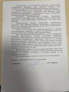 Депутат Гордумы, кандидат в депутаты Государственной думы (КПРФ) Александр Сафронов сообщил «Утреннему Югу», что подготовил депутатский запрос в прокуратуру Краснодара с просьбой проверить и дать юридическую оценку действиям Евгения Первышова.