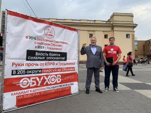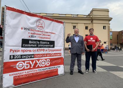 "Руки прочь от Грудинина и КПРФ", "Власть боится сильных оппонентов", "В 2016 году Верховный Суд снимал с выборов Обухова, в 2021 -Грудинина!" - лейтмотив информационной акции КПРФ в ВАО Москвы.