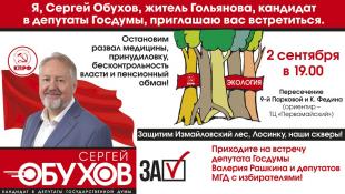 Москва. 2 сентября пройдёт встреча с депутатом Госдумы Рашкиным и координатором "Народной приемной" Обуховым в защиту зелёных зон ВАО