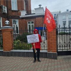 Перед началом заседания и на протяжении всего мероприятия коммунисты, комсомольцы и кандидаты в депутаты Государственной области от КПРФ стояли у здания, где располагается облизбирком, с одиночными пикетами. На плакатах были написаны лозунги: «НЕТ ГОЛОСОВАНИЮ НА «ПЕНЬКАХ»!», «Уличное голосование – создание условий для фальсификаций».