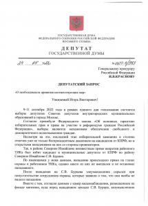 Несмотря на эту «игру в кальмара», которую устроили для наших кандидатов власть имущие, мы будем продолжать бороться всеми доступными нам способами. Мы будем добиваться справедливости и победы наших кандидатов в Москве. По ситуациям с Бурцевым, Разенковым и Медведевой я направил срочные депутатские запросы в Генпрокуратуру и МВД.