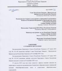 Главе Республики Хакасия – Председателю
