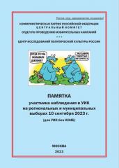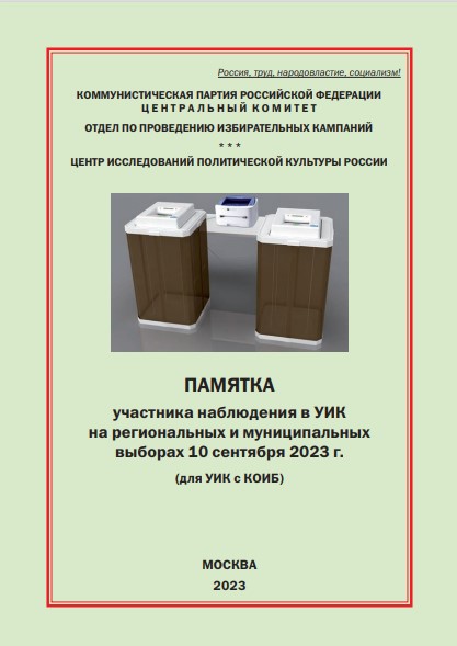 Отдел ЦК КПРФ по проведению избирательных кампаний разработал Памятки для членов УИК, наблюдателей и иных участников наблюдения по работе в УИК на выборах в сентябре 2023 года.