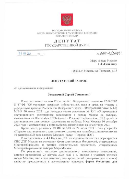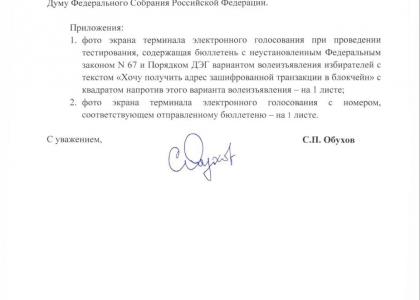 Депутат Государственной Думы Сергей Обухов в социальных медиа проинформировал избирателей о своих новых депутатских запросах в связи с сомнениями в защищенности и надежности голосования в системе дистанционного электронного голосования.