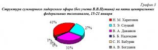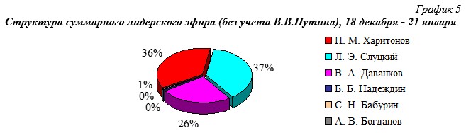 Динамика и структура суммарного лидерского телеэфира без учёта представленности В.В. Путина, 18 декабря – 21 января представлена на гр.4 и на гр.5.