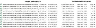 На иллюстрации показан размер и время создания файлов до и после их подмены 9 сентября: