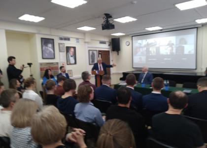 Затем кандидат в Президенты РФ от КПРФ выступил в актовом зале имени композитора С.В. Рахманинова, где собрался трудовой коллектив учреждения.