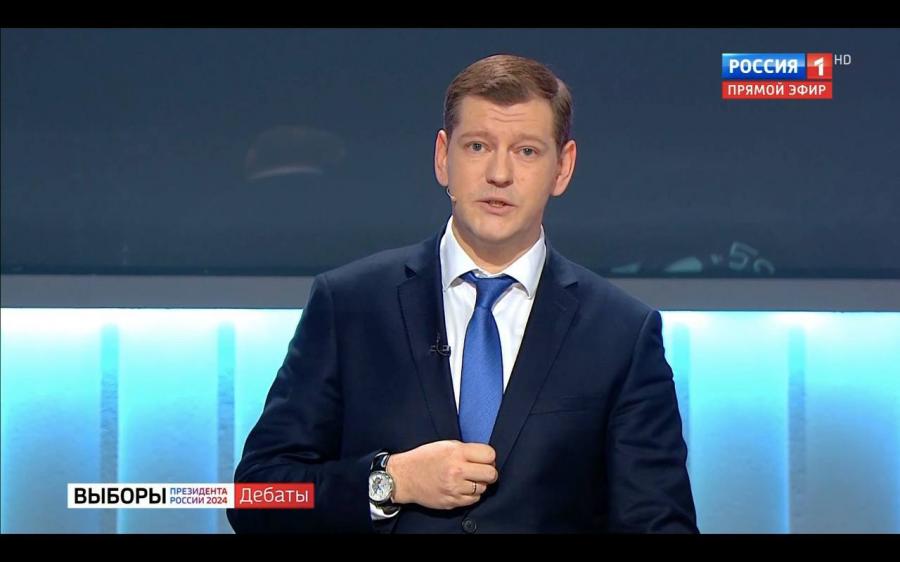 В студию «России-1» из кандидатов пришли только Николай Харитонов (КПРФ) и Владислав Даванков (НЛ) и примкнувший к ним юный доверенный представитель ЛДПР, который только к концу второго раунда вспомнил, что он заменяет Слуцкого.