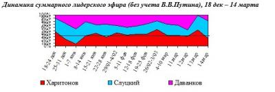 Динамика новостного ТВ-эфира "остальных кандидатов" показывает повышенное внимание политадминистраторов к фигуре лидера ЛДПР Слуцкого на старте и финише кампании.