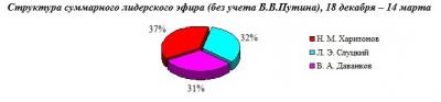 ✅Если проанализировать хронометраж представленности "остальных кандидатов" в новостном телеэфире, то самым информационно активным был Харитонов (37% новостного эфирного времени среди трех кандидатов), на втором месте Слуцкий (32% времени новостного эфира), на третьем - Даванков (31%). Опять предлагаю желающим сопоставить эту эфирную статистику с итоговыми результатами выборов 17 марта.