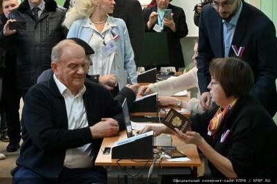 В воскресенье, 17 марта 2024 года, Председатель ЦК КПРФ, Руководитель фракции КПРФ в Государственной Думе ФС РФ Г.А. Зюганов проголосовал на избирательном участке №143 в городе Москве.