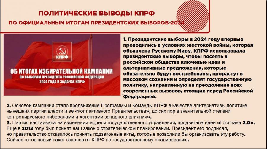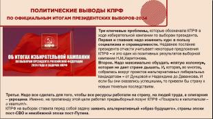 КПРФ на выборах ставила перед собой задачу заявить альтернативный «образ будущего», страны эпохи пост-СВО, - разъяснял С.П.Обухов.