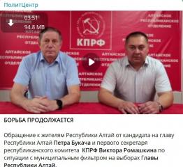 📌Наши товарищи из Горно-Алтайска и Липецка сообщили, что кандидатам Токареву (Липецк) и Букачу (Алтай) не удалось преодолеть властную блокировку муниципального фильтра на губернаторских выборах. Тактика простая: партия власти собирает у всех мундепов в части районов все подписи и не дает возможности кандидатам КПРФ пройти процедурные рогатки в трех четвертях районов.