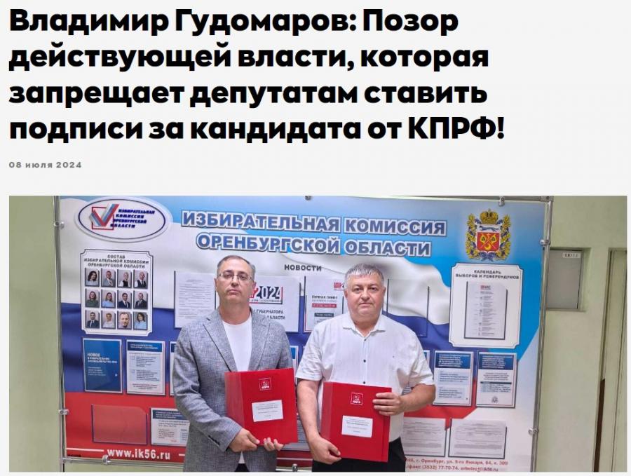 Член Президиума, секретарь ЦК КПРФ, доктор политических наук Сергей Обухов прокомментировал в социальных медиа скандальную ситуацию, сложившуюся на ЕДГ-2024 в связи с недопуском каждого четвертого кандидата КПРФ на губернаторских выборах и пятерых протестных кандидатов КПРФ на выборах в МГД.